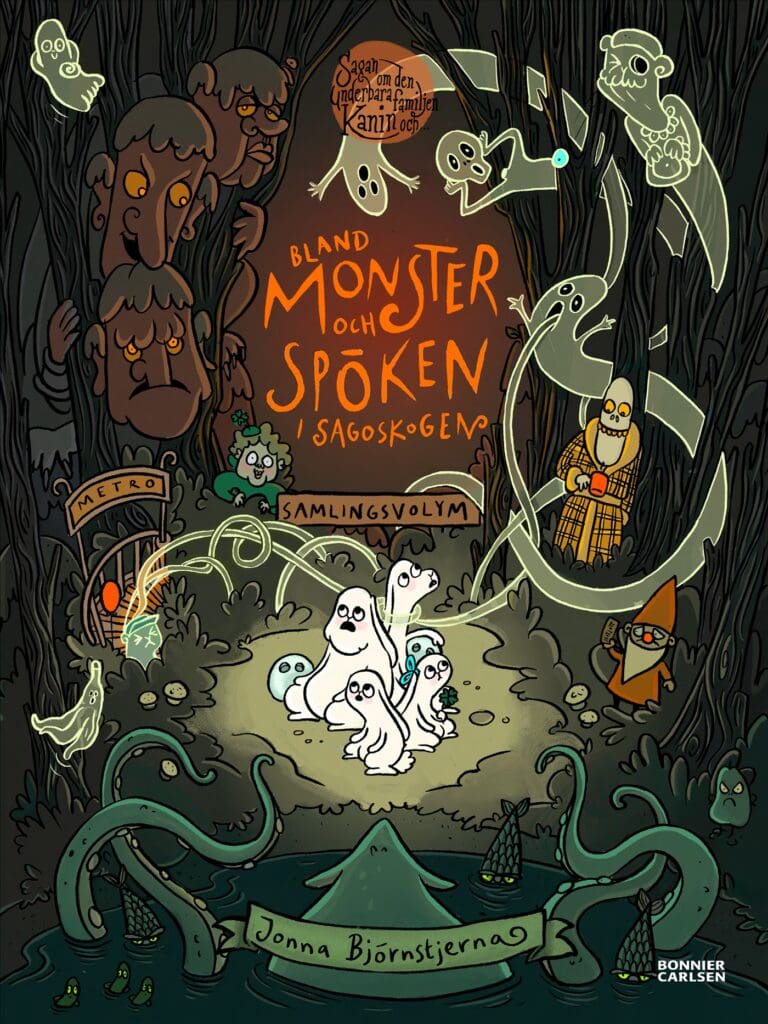 Praise has been pouring in for Jonna Björnstjerna’s award winning picture books since the first book about Lillebror Kanin was published in 2007. They are wonderfully exciting and enter taining for the youngest book lovers, and attentive adults will also find little gifts in the form of references to other well-known fairy tales or classic horror films. Now we are bringing together Djupsjöns hemlighet (The Secret of Deep Lake, 2017), Farbror Elände (Uncle Misery, 2018) and Spöktåget (The Ghost Train, 2020) in the same book.