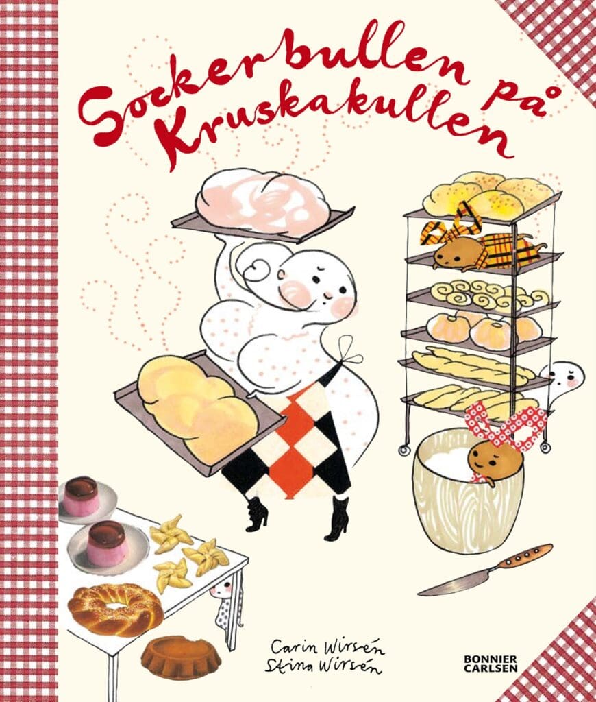 Carin Wirsén, illustrated by Stina WirsénIn the little town there is a bakery. It’s always full of people, buying buns to have with their juice, rolls for breakfast, biscuits for their coffee break and loaves of bread for day trips. The bakery is run by a little lady and her two children, who learned from an early age to use a rolling pin and an icing bag, to tell the difference between rye and wheat, and to know where to find the icing sugar and the vanilla sugar.